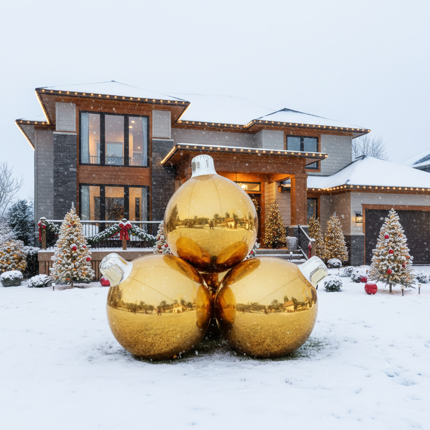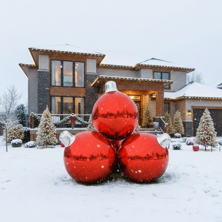 All Shiny Ornaments are durable, reusable, and stay inflated for the whole season. These pyramids for a smaller footprint. Use them parties, corporate events, photoshoots, homes, commercial spaces, yards, pools—or just for fun!
