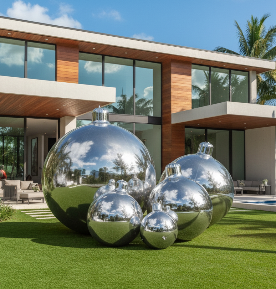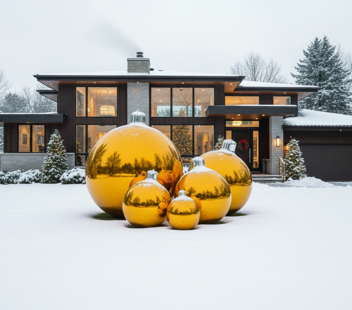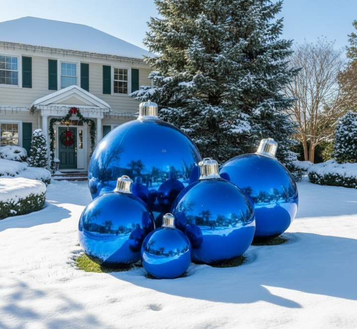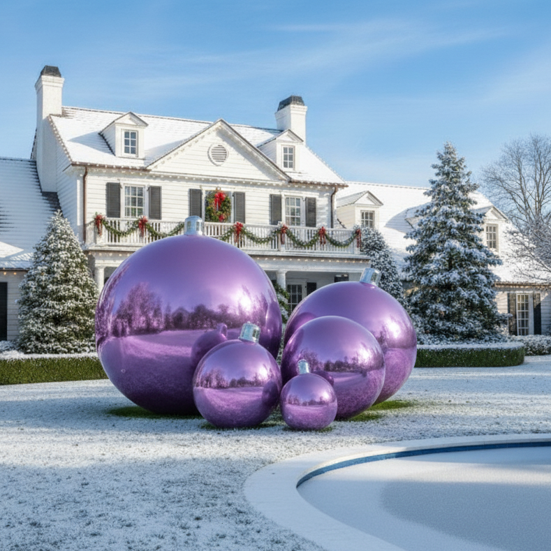 It's a great addition to any home, yard, or event. Crafted for easy setup and hassle-free storage, these durable, reusable Shiny Ornaments are suited for indoor and outdoor use—rain or shine—and come with D-rings for secure attachment to any surface. Balls stay inflated for weeks, ensuring your display remains pristine through the holiday season.