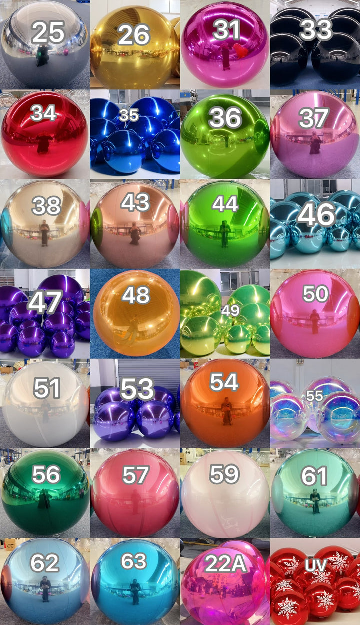 Our namesake product and best seller - Big Shiny Balls® - the inflatable chrome mirror-finish ball. Durable, reusable, with D-rings for attachment. Choose from a variety of colors and sizes to fit your unique style. Made to order, reusable, epic.